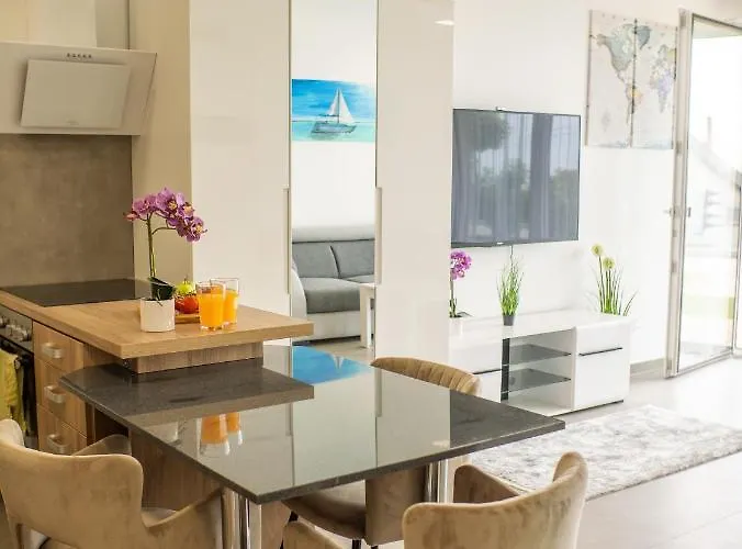 تم تجهيز المطبخ بالمايكرويف والغلاية الكهربائية والبرَّاد. تقع Panorama Superior Apartments - Pool، Garden، Parking بجوار محطة حافلات Balatonalmadi، vasuti megallohely bejarati ut. يمكن للضيوف أيضًا الاسترخاء على الشرفة الّتي تطلّ على البحر.